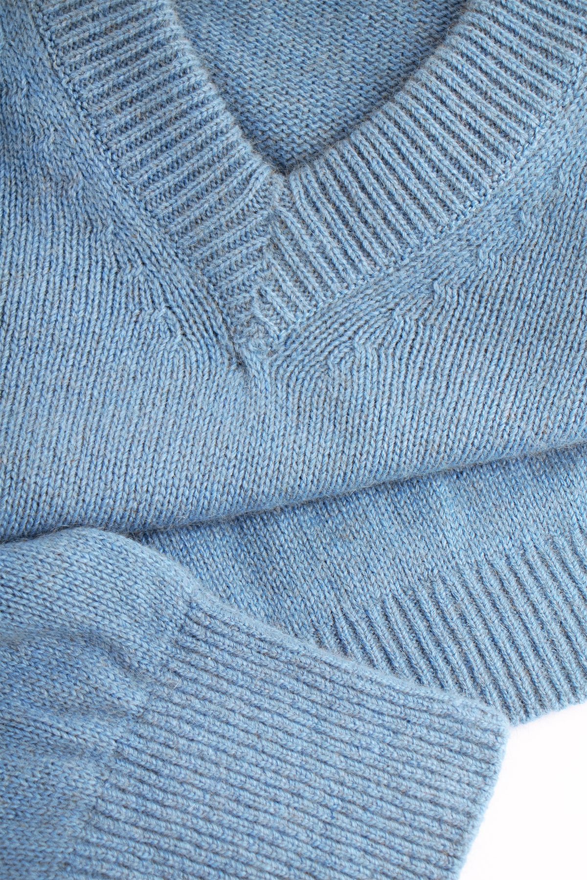 Designed with a relaxed fit and a flattering low V-neck, this sweater is all about refined simplicity. The linked-on neckline creates a smooth, seamless finish, while the extended 1x1 rib cuffs add a feminine touch with a hint of structure.
