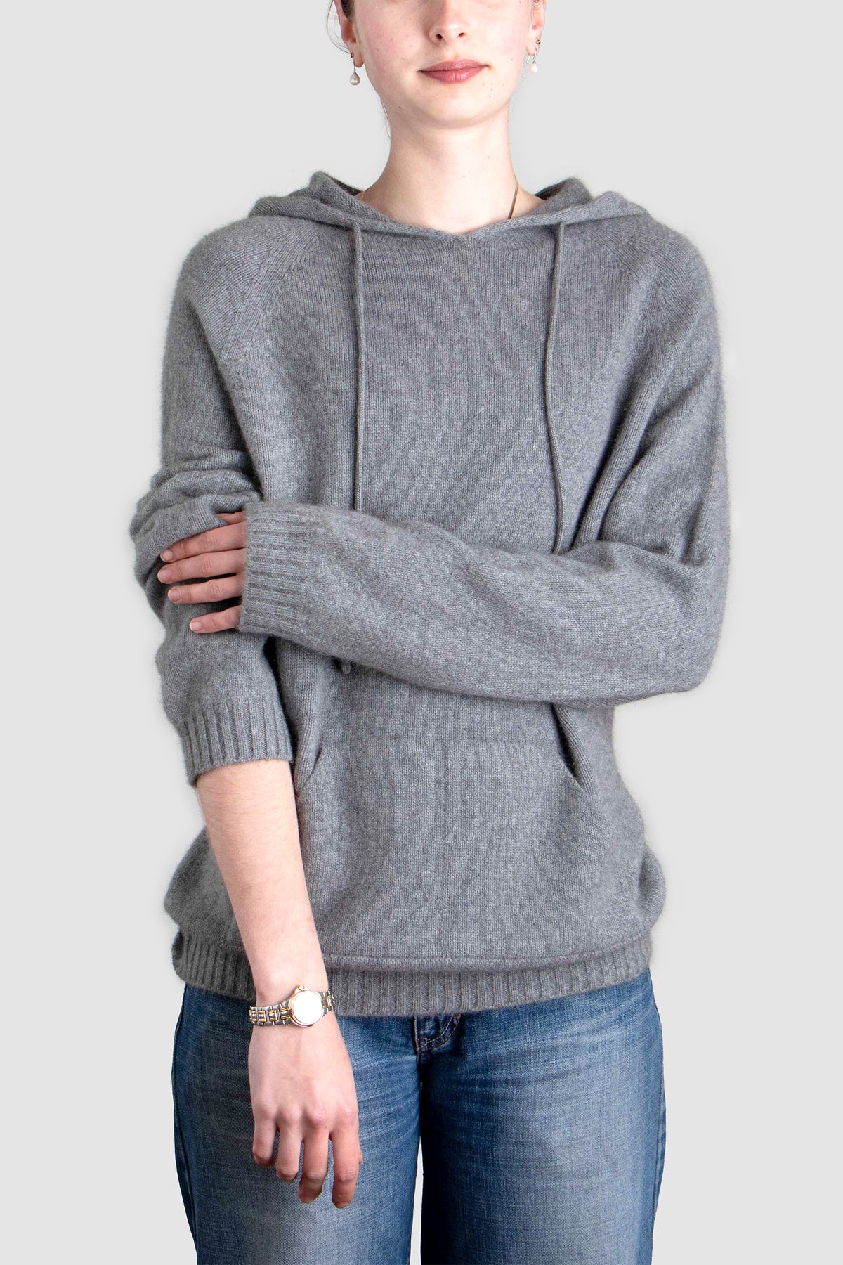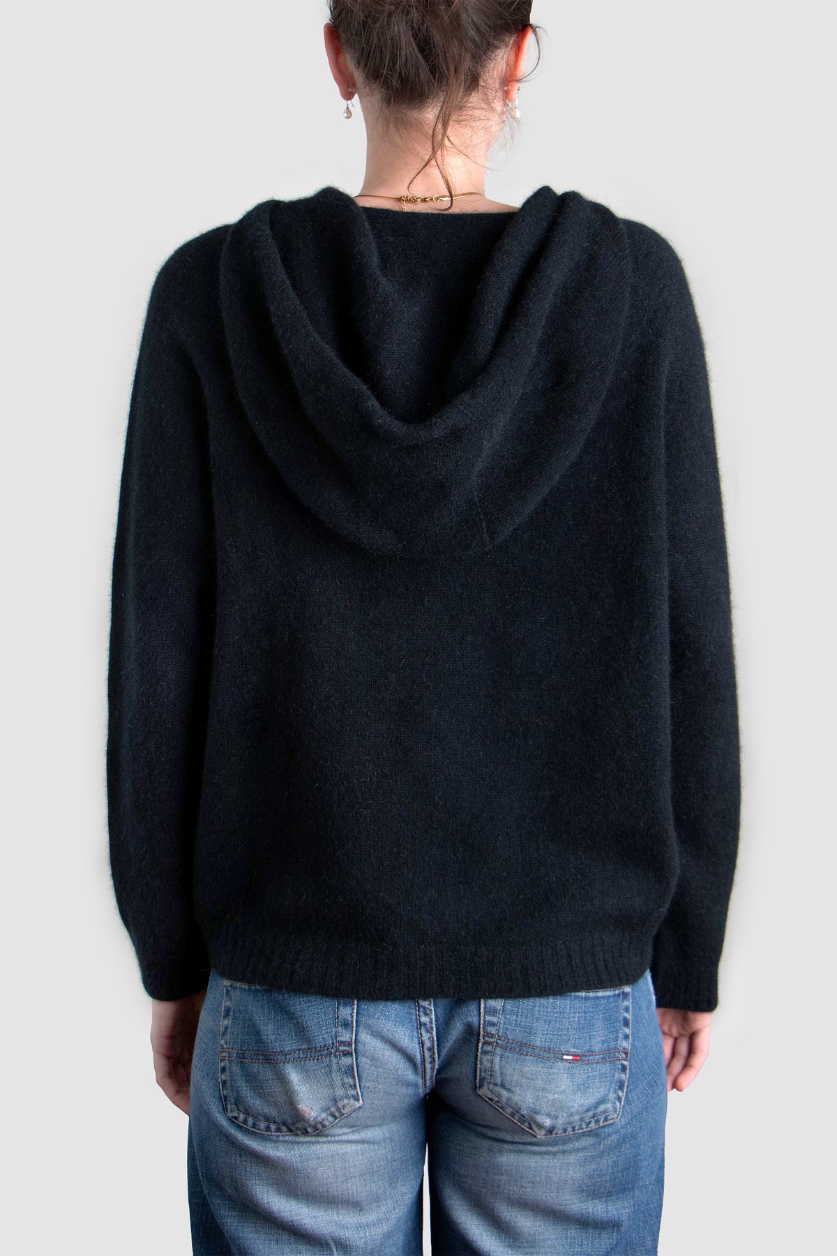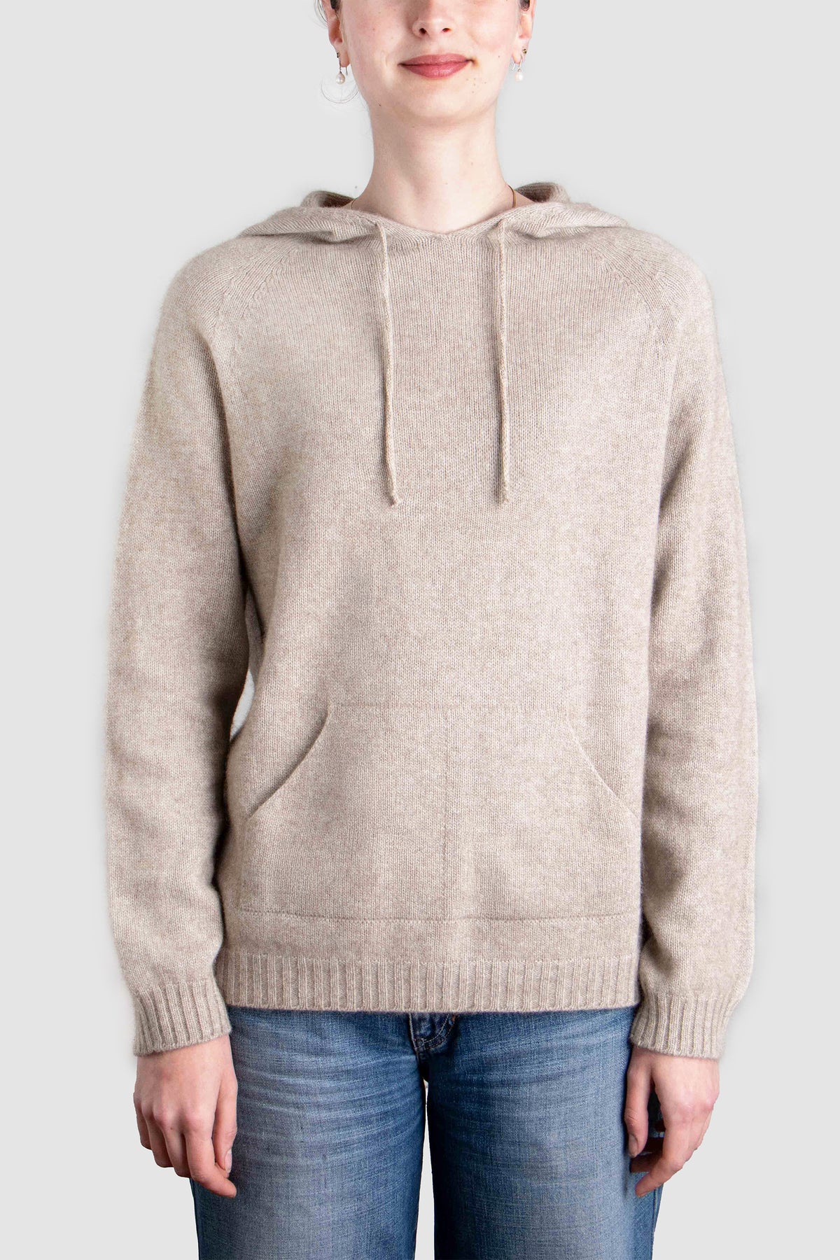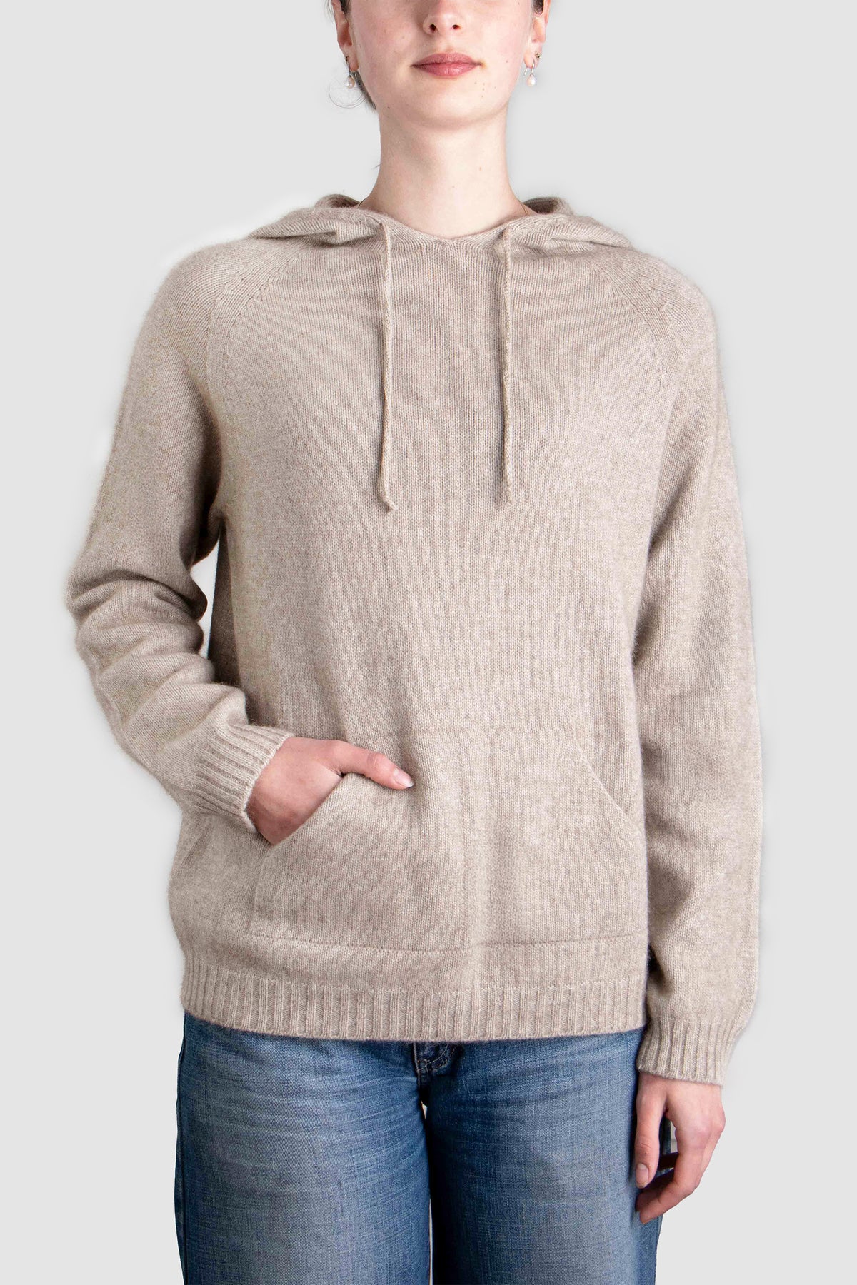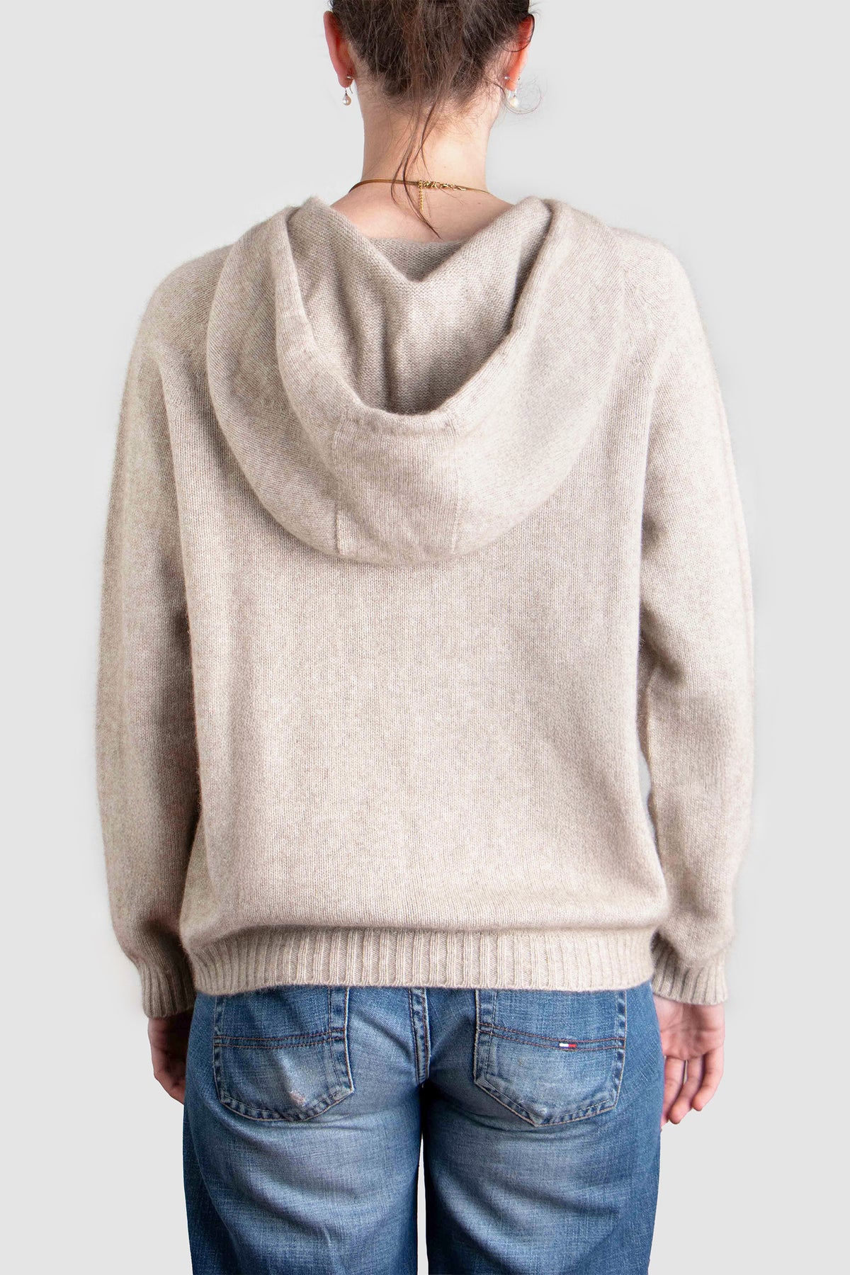 Designed in a unisex silhouette, the hoodie is intentionally oversized for women and tailored true-to-size for men. The generous hood, tonal drawcord, and discreet two-compartment front pocket offer subtle practicality without compromising elegance.