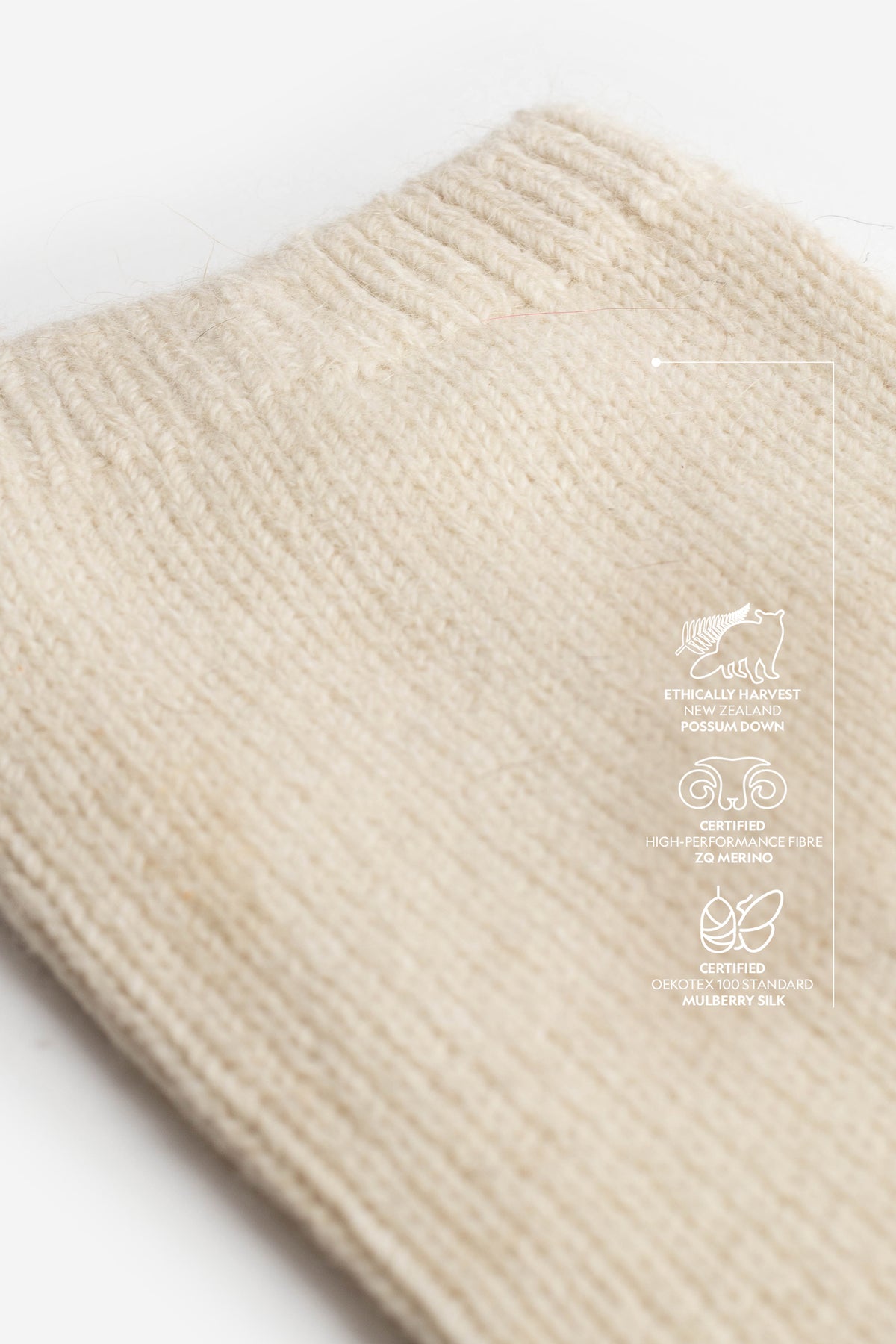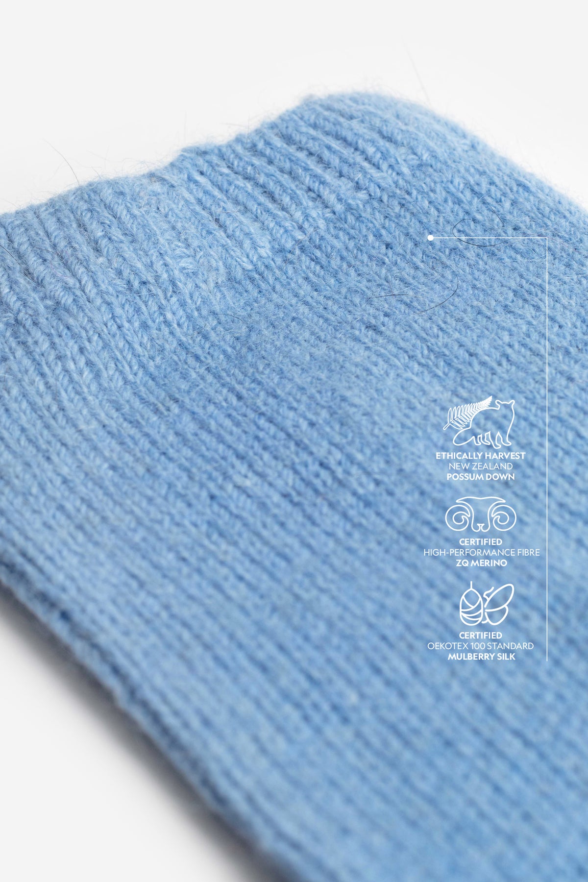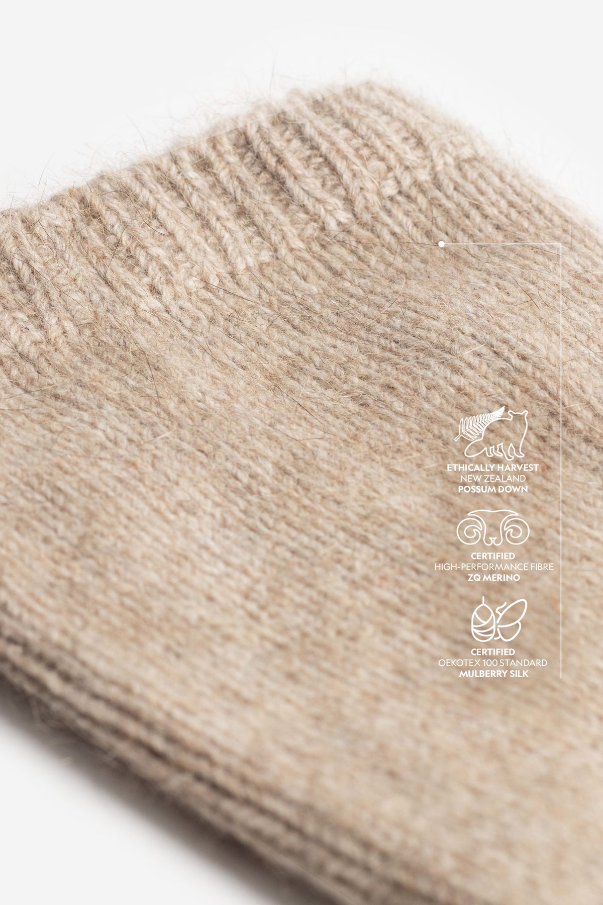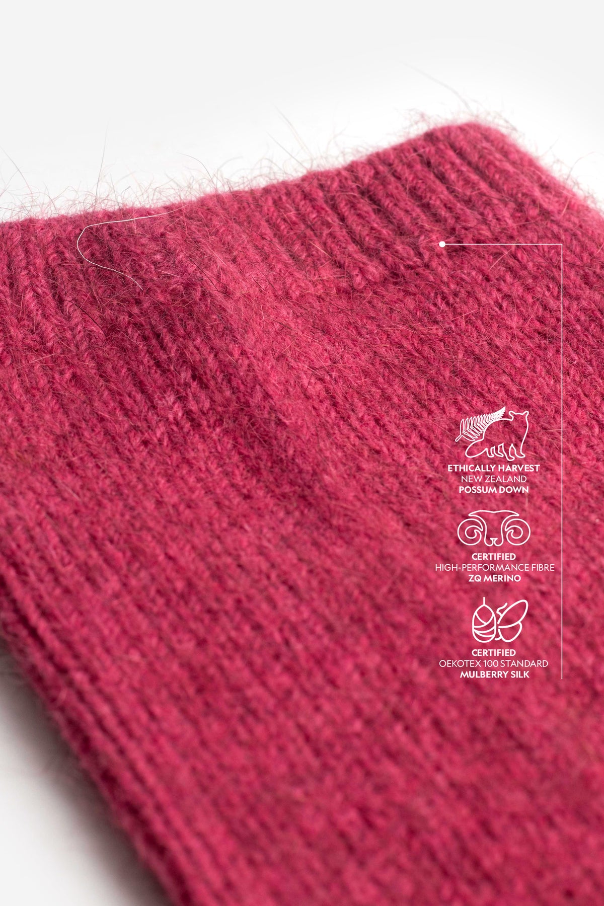 The ultrafine ZQ merino offers exceptional softness, excellent moisture management, and lasting shape retention. Brushtail possum down adds remarkable warmth, a uniquely light feel, and the signature halo effect. The addition of premium Mulberry silk, known as one of the strongest natural fibres in existence, brings unparalleled durability.