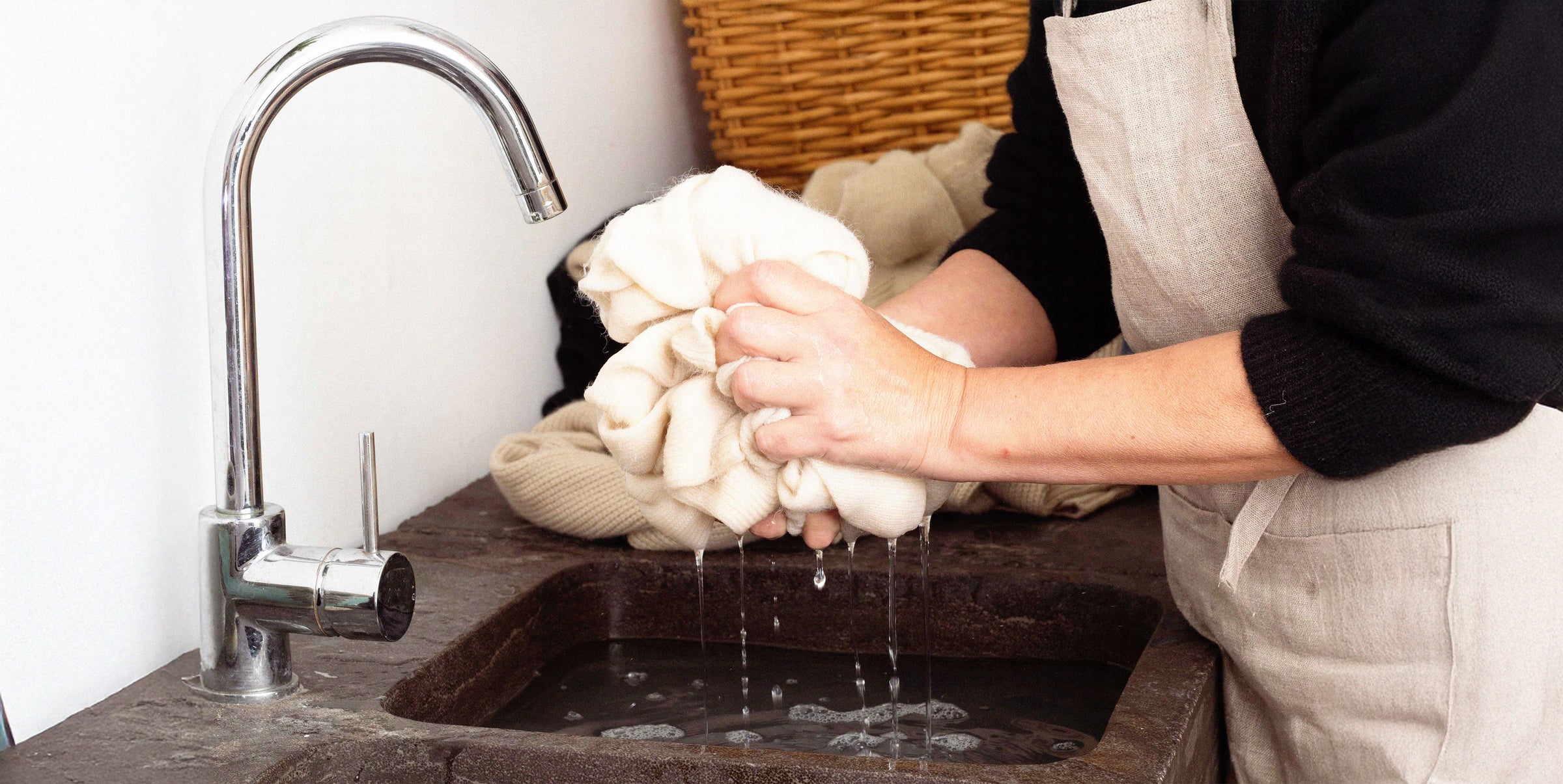 Once sorted, fill a clean basin or sink with lukewarm water (30°C max).