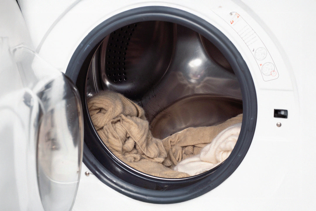 Before anything else, sort by colour, light with light, dark with dark. Cashmere and Merino are highly absorbent, and even a quick cold wash can cause dyes to transfer. Separating garments protects them from dulling, bleeding, or staining. Think of it as the foundation for every successful wash.